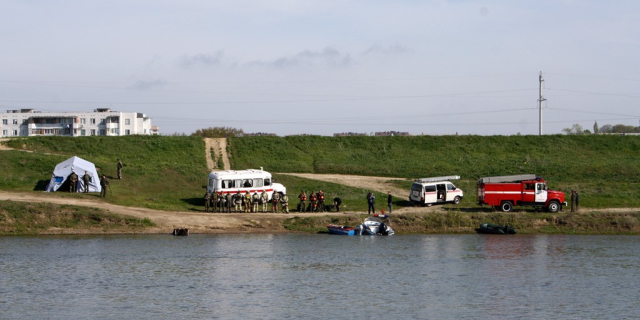 По замыслу учений, прогулочный теплоход «В. Грушка» с пассажирами сел на мель. Существует вероятность повреждения корпуса судна и реальная угроза розлива нефтепродуктов в реку