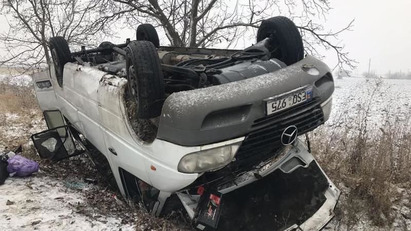 Пассажирский микроавтобус слетел с трассы и перевернулся