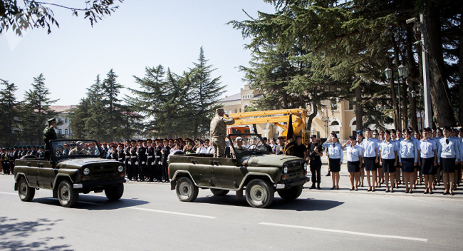 «Каждый шаг этого парада мы посвящаем историческому пути нашей республики, который был пройден к сегодняшнему дню с 20 сентября 1990 года», — сказал президент Анатолий Бибилов, выступая с трибуны перед началом марша.