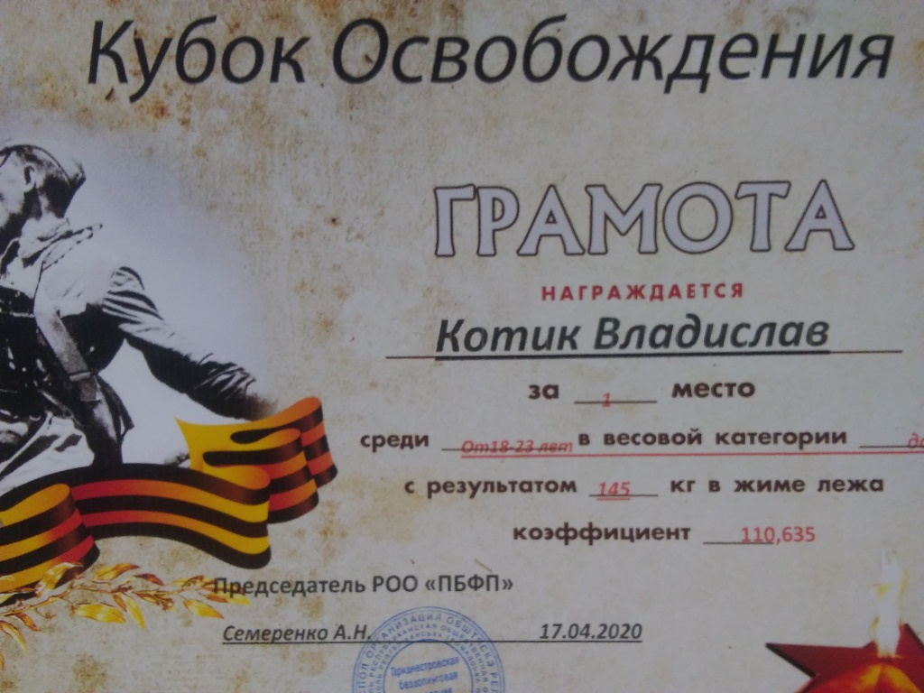 Тирасполь, 17 апреля. /Новости Приднестровья/. В Приднестровье завершился первый турнир по пауэрлифтингу в интернет-режиме «Кубок освобождения», который проходил в течение недели. Его организаторами выступила Приднестровская бездопинговая федерация пауэрлифтинга (ПБФП).