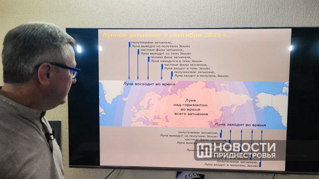 «Вход в полутень примерно в 18:30. Через час начнётся частичное лунное затмение, а самая активная фаза будет как раз около 20:30, когда в Приднестровье наступает вечер. И продлится эта фаза очень долго: практически до 11 часов вечера», – говорит учёный.