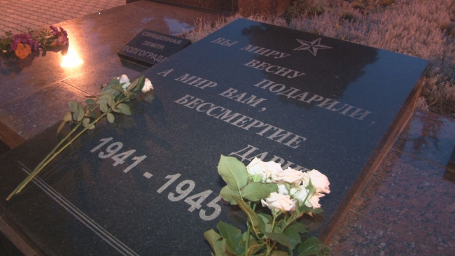 На городском Мемориале Славы была зажжена 81 свеча – именно столько советских воинов покоятся здесь в братской могиле