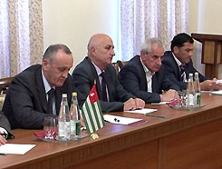 Во встрече участвовали секретарь Совета безопасности Абхазии Станислав Лакоба, посол Российской Федерации в Абхазии Семен Григорьев, руководитель администрации президента Беслан Кубрава.