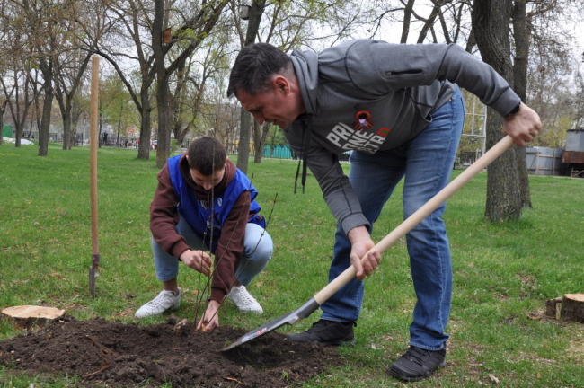 Школьники, студенты и власти города высадили 40 кустов сирени