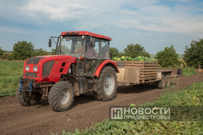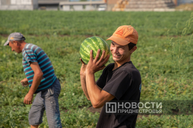 «В этом году урожай в Приднестровье поспел не раньше, а быстрее. Всё из-за сильного солнца. Когда арбуз начинает спеть, его можно собирать в течении двух недель. Не больше», - рассказал агроном фирмы Андрей Кизил.