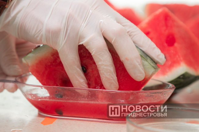«Каждая поступающая на рынок партия арбузов попадает в лабораторию с соответствующими документами. После этого мы приступаем к собственному анализу. Допустимая норма нитратов для арбузов - не более 60 мг на 1 кг, для дыни - не более 90 мг на 1 кг. В этом сезоне нами не было зафиксировано превышений этих показателей», - отметила ветеринарный врач Республиканского центра ветеринарно-санитарного и фитосанитарного благополучия ПМР Антонина Лесниченко.