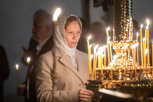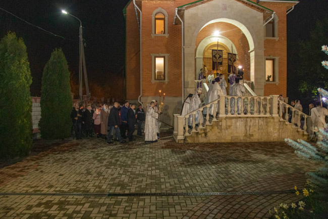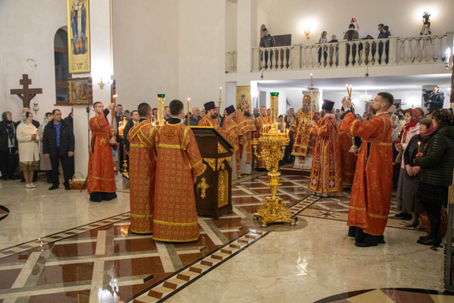 Пасхальное богослужение отличается особой торжественностью. После полунощницы, последней службы Великой субботы, православные совершили крестный ход. Он символизирует шествие жен-мироносиц к гробу Христа. По его окончании на трех языках зазвучало «Христос Воскресе!» в знак всемирности праздника праздников и торжества из торжеств.