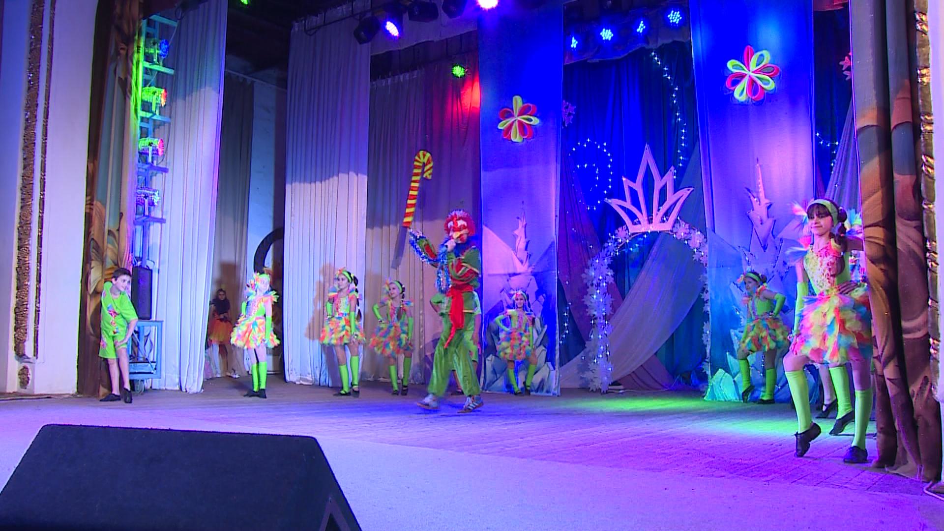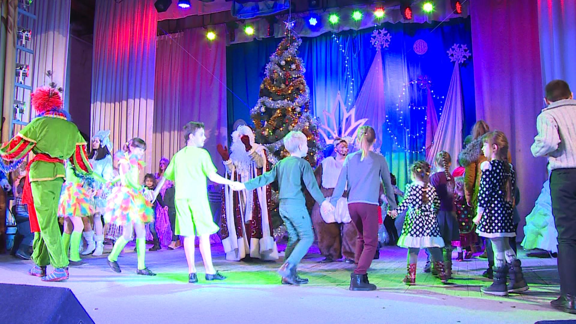 Затем для всех присутствующих на сцене разыграли театрализованное представление. Новогодняя тематика развеселила ребят. Артисты ГДК показали сказку, в которой победило добро.