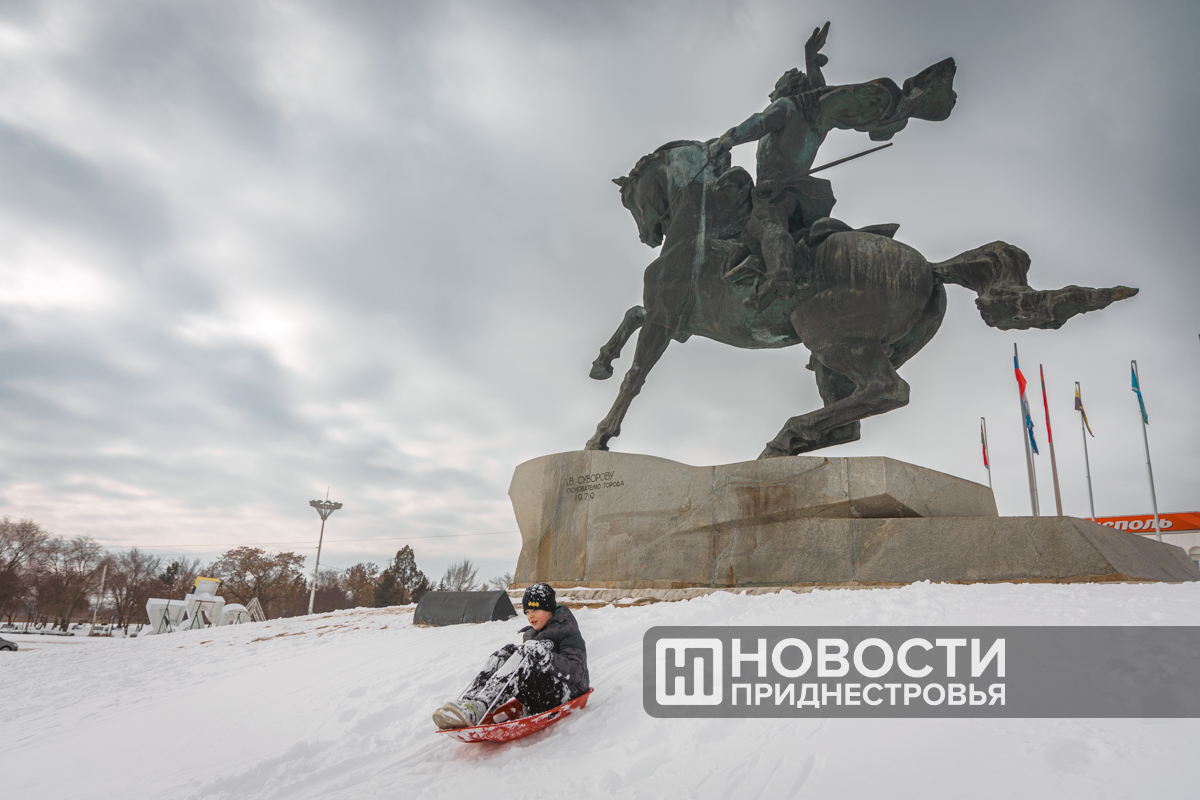 Фоторепортаж Атмосферные кадры заснеженного Тирасполя — в нашем фоторепортаже Девушка идет с цветами сквозь снег Дети на санках штурмуют склон у памятника Суворову Мальчик съезжает с горки на санках Макет Тираспольской крепости напоминает сказочные декорации Домики макета Тираспольской крепости почти скрылись в снегу Девочка в костюме Снегурочки Заснеженные дорожки Екатерининского парка Красный Запорожец у цветочного магазина Школьник возвращается домой в метель Здание Верховного Совета выглядывает из сугроба Девушка расчищает дорогу от сугробов Мемориал Славы усыпан снегом Радостные жители столицы прогуливаются по мосту через Днестр Пёс бежит по снегу Лёд на Днестре тронулся Движение льдин Девушка в расписном платке Утки сидят на льду Вид на Дворец детско-юношеского творчества Пушистые собаки зимой Фоторепортаж