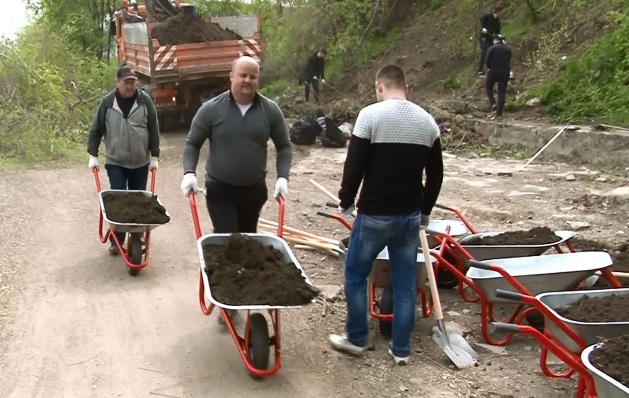 Сотрудники госадминистрации и её подведомственных учреждений работали в парке Александра Невского и на городской набережной. Во главе трудовой команды – глава города Роман Иванченко.
