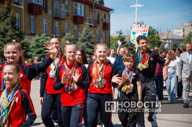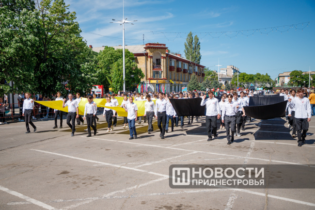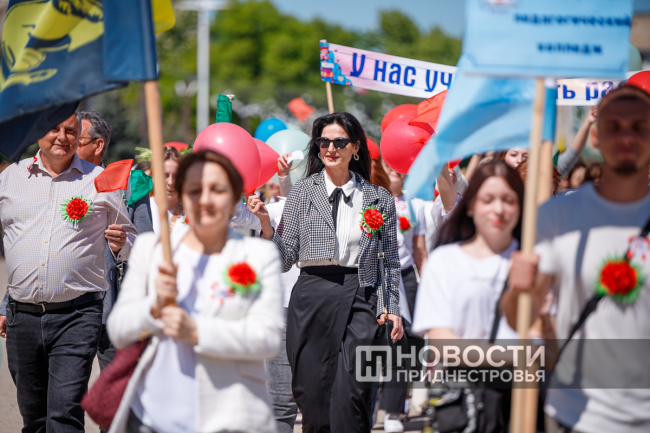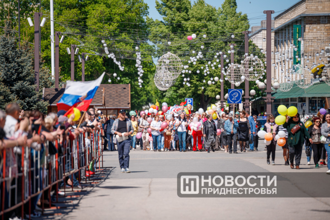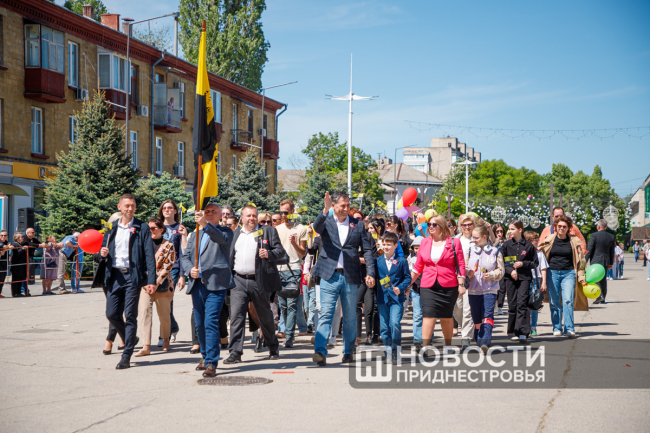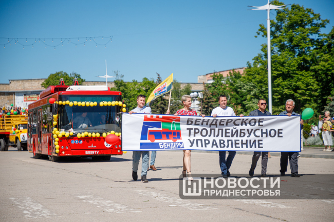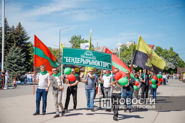 Всех участников шествия разделили на 5 колонн. Каждая представляла свою отрасль. Аграрии, коммунальщики, газовики, педагоги, спортсмены, врачи, производственники… Каждый из них вносит свой вклад в развитие города, рассказал глава Бендер Роман Иванченко. Он вместе с коллегами из госадминистрации и местными депутатами тоже прошёл в колонне.