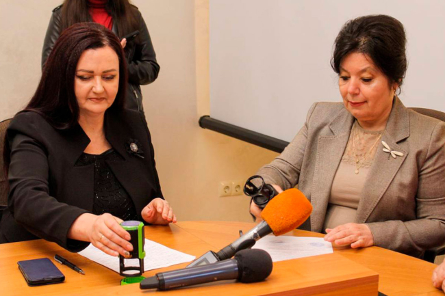 В подписании договора приняли участие министр просвещения Светлана Иванишина, президент Торгово-промышленной палаты Василий Кожан, директор ЗАО «Бендерский мясокомбинат» Валентина Зубкова и директор столичного колледжа технологий и управления Оксана Дениченко.