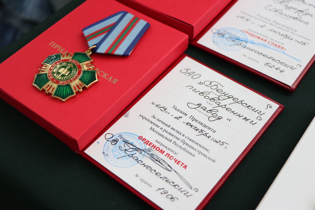 Тирасполь, 9 октября. /Новости Приднестровья/. Первый заместитель председателя Правительства – министр экономического развития ПМР Сергей Оболоник поздравил работников Бендерского пивоваренного завода со 165-летием со дня его основания. За внедрение новых прогрессивных технологий, высокое качество выпускаемой продукции предприятие было удостоено Ордена Почета.