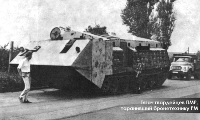 Олег Б., гвардеец (из книги Г. Волового): «Со стороны Протягайловки, по дороге, что выходит прямо на нашу казарму по улице Старого, выскочили два бронетранспортера, сходу открывших огонь по казарме и нашей МТЛБ, стоявшей на перекрестке. МТЛБ сразу вывели из строя. Но мы успели завести большой артиллерийский тягач (БАТ), обшитый стальными листами, и погнали его прямо на БТРы ОПОНа. Этих тягачей у нас было только два, но вид у них устрашающий. Плюс они стояли на мощных танковых шасси. Эта махина „подлетела“ к бронетранспортерам и с разгону затолкала их во двор магазина, где и заблокировала. Когда сидевшие в БТРах опоновцы увидели БАТ, мчащийся на них, то повыскакивали из машин и дали деру. Мы потом затащили трофейную технику к себе и с ее помощью защищали казарму и район».