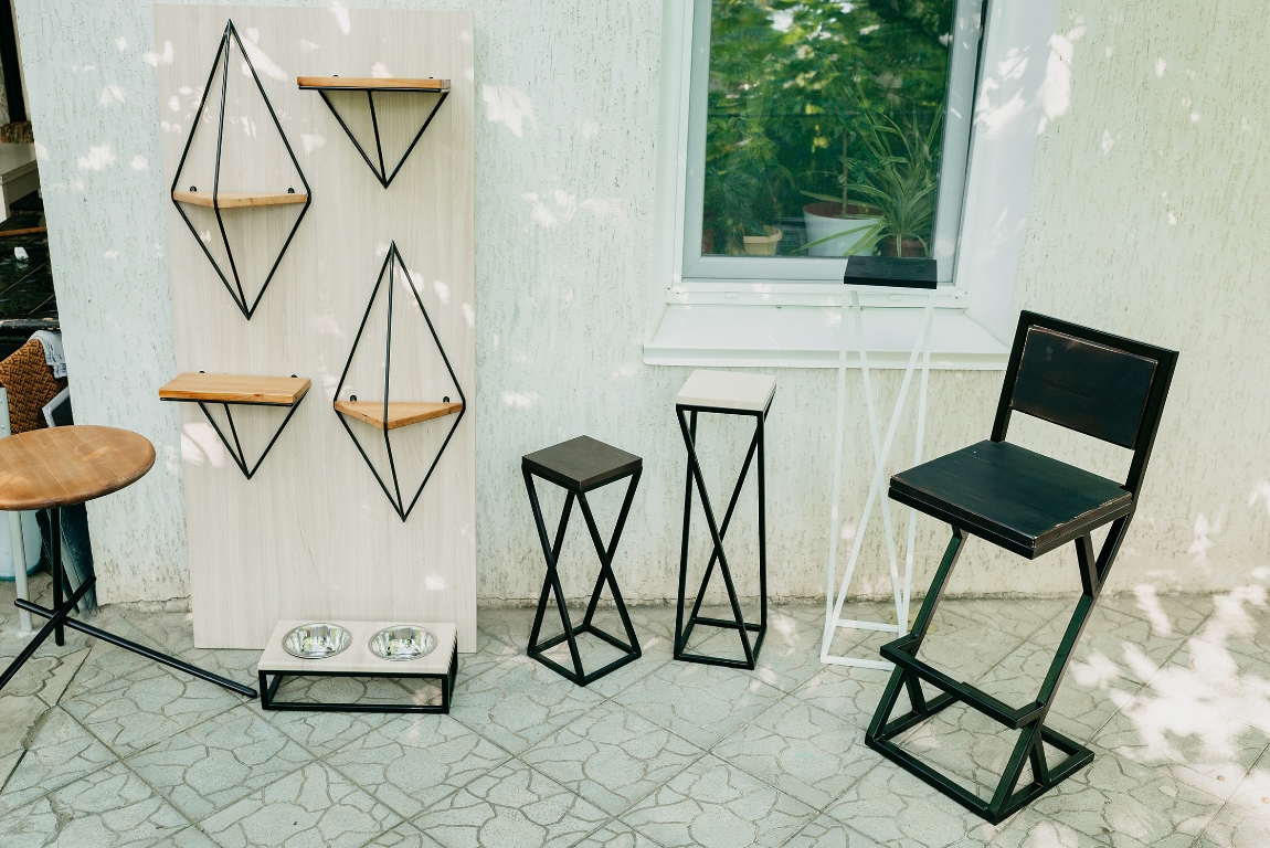 А я впервые с их продукцией познакомился месяц назад в Днестровске на ярмарке-выставке «Покупай приднестровское». На выставочном месте Граур увидел барные стулья, табуреты, столик для компьютера, стеллажи для книг и инструментов, детские стульчики, вешалки для одежды и те самые полки для цветов. Изделия были выполнены аккуратно, со вкусом, и даже здесь, на выставке (а представьте в офисе или комнате), они создавали уют и практичный интерьер. Такую мебель принято называть мебелью в стиле лофт.