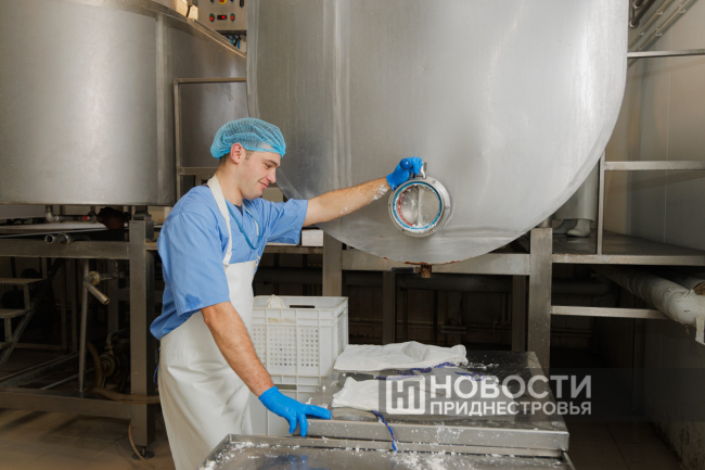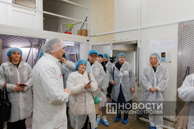 После мясного комбината комиссия посетила молочное производство, куда ежедневно поступает молоко с собственной фермы в Рыбницком районе.