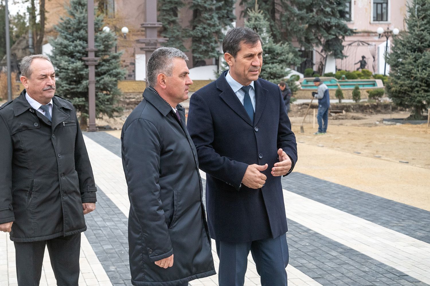 Бендеры, 18 ноября. /Новости Приднестровья/. Президент ПМР Вадим Красносельский посетил Бендеры с рабочим визитом. Глава государства побывал в центральной части города. Здесь идут работы по благоустройству, их рассчитывают завершить в первых числах декабря. Открытие участка, названного Преображенским сквером, совместят со стартом сезона новогодних мероприятий.