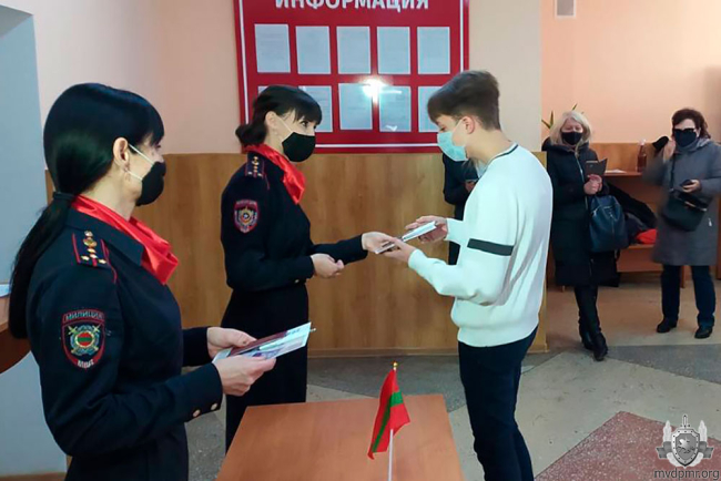 Обращаясь к молодым приднестровцам, начальник паспортного отделения Слободзейского РОВД Татьяна Баранова, отметила, что, получив определённый набор знаний, умений и навыков, молодые люди смогут выбрать для себя профессию, внося свою лепту в развитие Приднестровья.