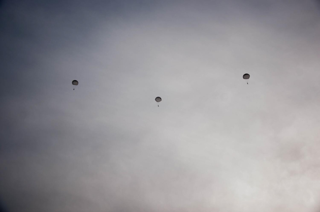 Бойцы спецназа отрабатывают прыжки с парашютом