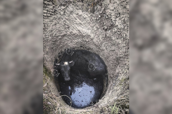 Как сообщает пресс-служба ГУпЧС МВД ПМР, хозяин животного сразу вызвал местных спасателей. Они обвязали бычка спансетами и подняли из ямы на ковше соседского экскаватора.