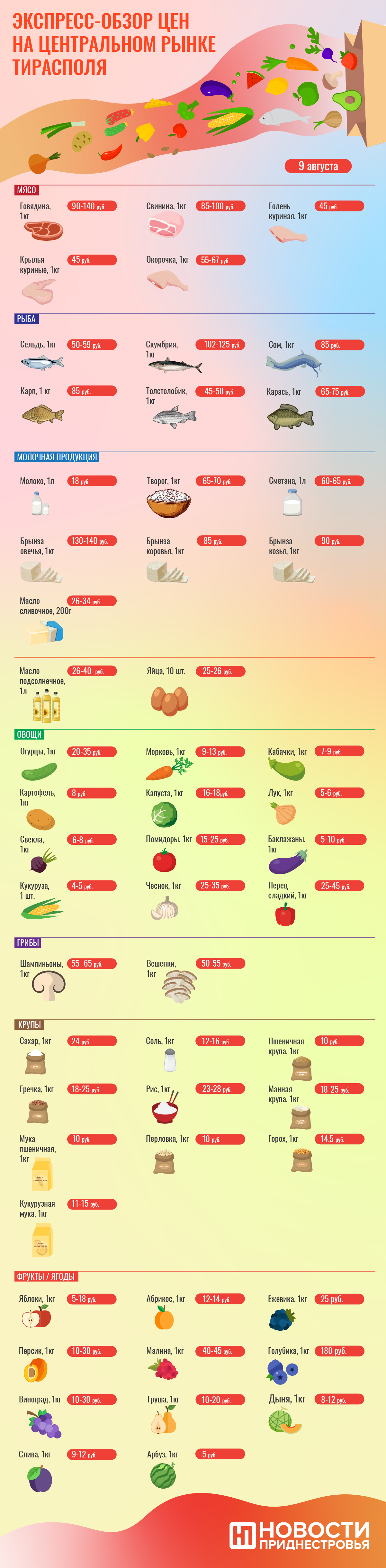 Тирасполь, 9 августа. /Новости Приднестровья/. Информагентство «Новости Приднестровья» возобновляет свою постоянную рубрику «Экспресс-обзор цен на центральном рынке Тирасполя». Сегодня на торговом объекте побывал наш корреспондент и рассказал, что сколько стоит.