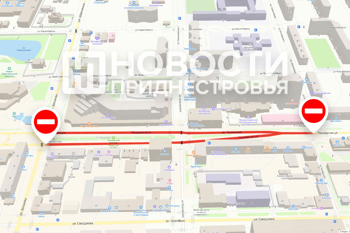 Часть Покровской улицы в Тирасполе полностью перекрыта по воскресенье