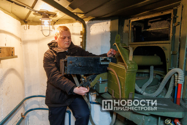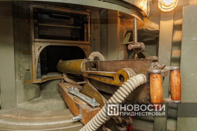 Историк обозначил наиболее редкие и ценные экспонаты. Среди них – приточный и вытяжной вентиляторы системы фильтровентиляции. Такие образцы сохранились только в нескольких музеях и музеефицированных ДОТах. Внутри на казематных станках установлены два оригинальных пулемёта «Максим» из фондов Тираспольского объединённого музея, а также огромное количество элементов и оборудования, привезённых из Карельского и Минского укрепрайонов.