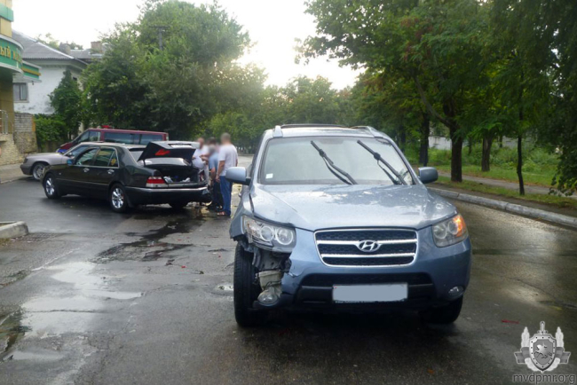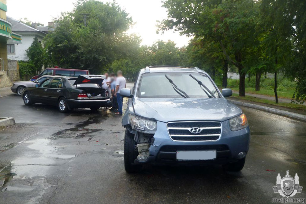 Возле столичного хлебокомбината произошло ДТП по вине автомобиля Mercedes. Двигаясь задним ходом, иномарка совершила столкновение с Hyundai.