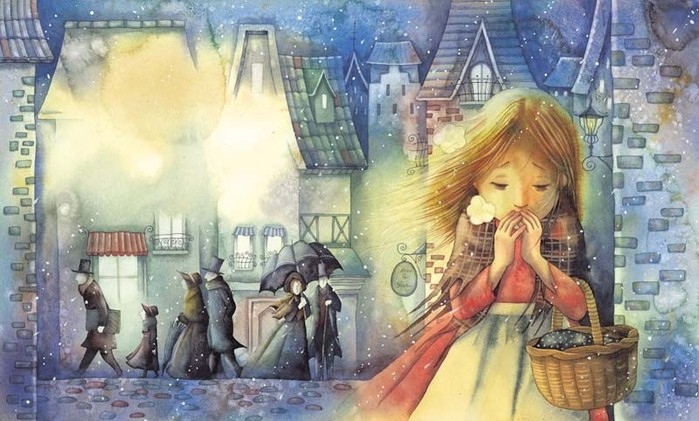 Это произведение - печальная история нищей маленькой девочки, вынужденной продавать спички в метель. Плохо одетая, измученная холодом и голодом, она бредет по улицам неприветливого города. Все торопятся по своим делам, спешат домой, к семьям, теплому камину и нарядным елкам, под которыми ждут горы подарков.