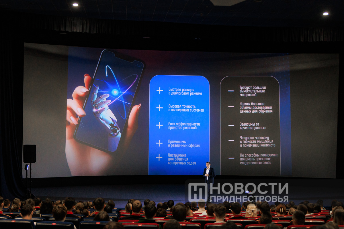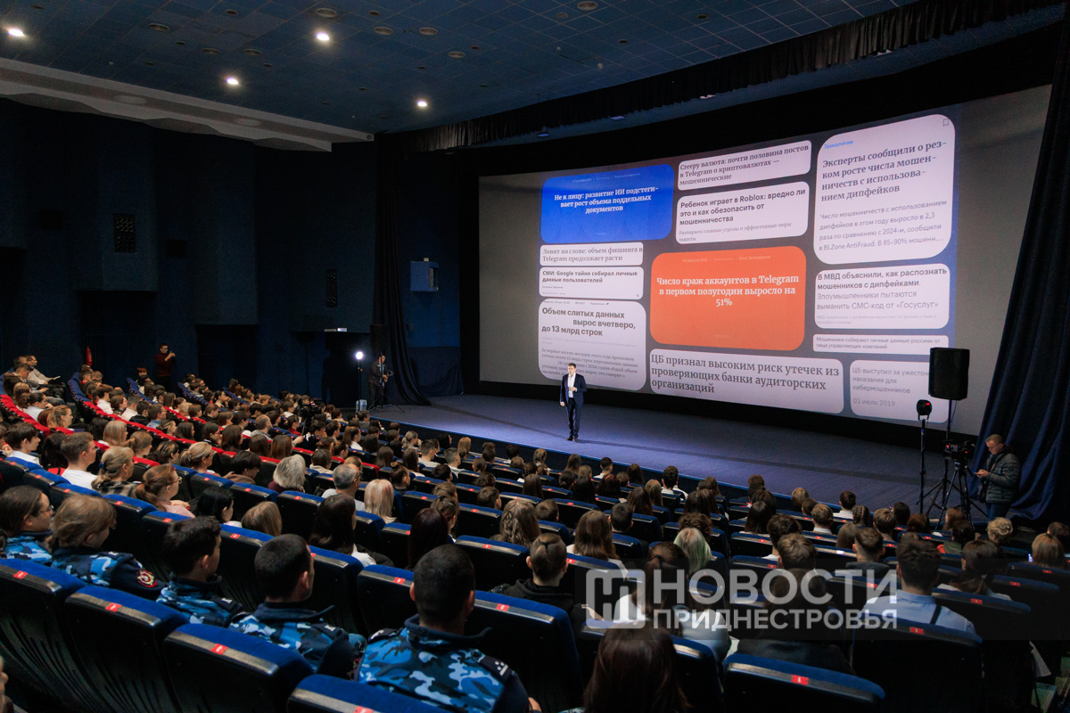 Тирасполь, 14 ноября. /Новости Приднестровья/. Безопасность в сети -  ключевой навык XXI века, об этом говорил министр цифрового развития Александр Димитрогло в ходе открытого урока для молодежи под названием «Цифровая гигиена». Лекция прошла в кинотеатре «Тирасполь» и собрала более 430 старшеклассников и студентов-первокурсников со всей республики - активных пользователей соцсетей, мессенджеров и образовательных платформ.