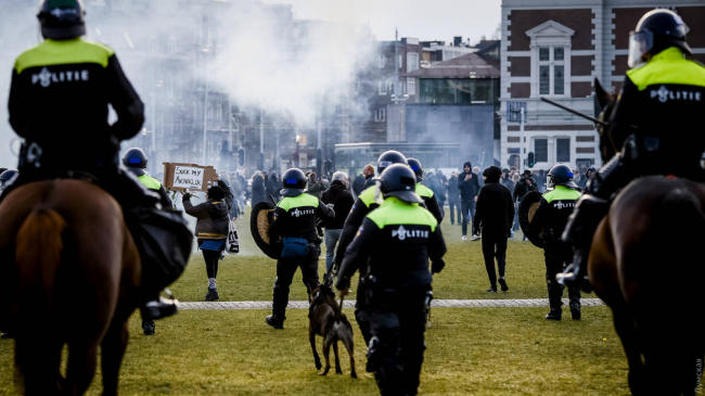 В Амстердаме из-за протестных акций против ограничений, введенных в связи с коронавирусной инфекцией, задержали 33 человек.