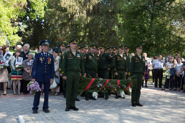 Продолжился ряд мероприятий тематическим представлением «Слава вам храбрые, Слава бесстрашные», которое подготовили студенты Тираспольского аграрно-технического колледжа им. М.В. Фрунзе и аграрно-технического факультета ПГУ им. Т.Г. Шевченко. Финалом памятного события стал праздничный концерт.