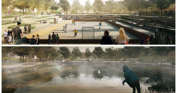 Одним из ключевых моментов плана станет реконструкция большого городского парка Enghaveparken. Здесь появятся площадки для игры в футбол или хоккей в сухую погоду. Во время дождя площадки будут превращаться в пруды, сдерживающие воду до её проникновения в подземный резервуар.