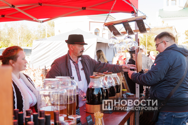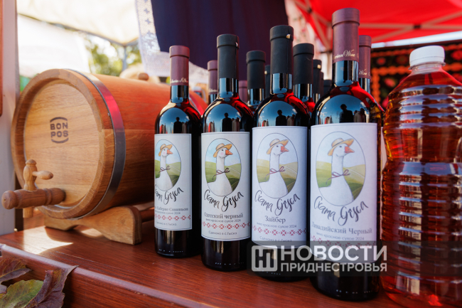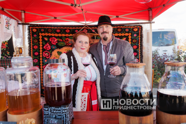 Одну из таких винно-виноградных локаций организовала семья Чебан из села Терновка – в фестивале они участвуют впервые. Сегодня их прилавок украсили 23 сорта винограда, однако всего в хозяйстве семьи Чебан порядка 70 сортов винного и около 200 сортов столового винограда. На сегодняшний праздник привезли всё самое вкусное. Неподалёку от винограда расположились и бочонки с домашним вином – всего 5 видов. Делают из своего же винограда.