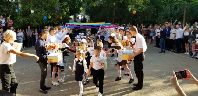 Тирасполь, 1 сентября. /Новости Приднестровья/. В столичных школах № 16 и № 18 первый звонок в этом году прозвенел только для учеников первых и одиннадцатых классов. Поздравить ребят пришли депутат Верховного Совета ПМР по избирательному округу № 32 «Комсомольский» Андрей Межинский и депутаты Тираспольского городского совета Виктор Крондев, Ирина Бурлаченко, Иван Дамаскин, Андрей Волкович и Павел Солодкий.