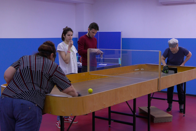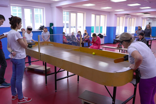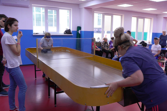 Тирасполь, 6 марта. /Новости Приднестровья/. В Республиканском спортивном реабилитационно-восстановительном центре инвалидов проходит турнир по шоудауну. Это настольная игра, изначально задуманная для незрячих людей и сочетающая элементы настольного тенниса и аэрохоккея. Игрокам нужно отбивать мяч битой, чтобы он, пролетев вдоль стола под разделительным экраном, попал в ворота соперника.