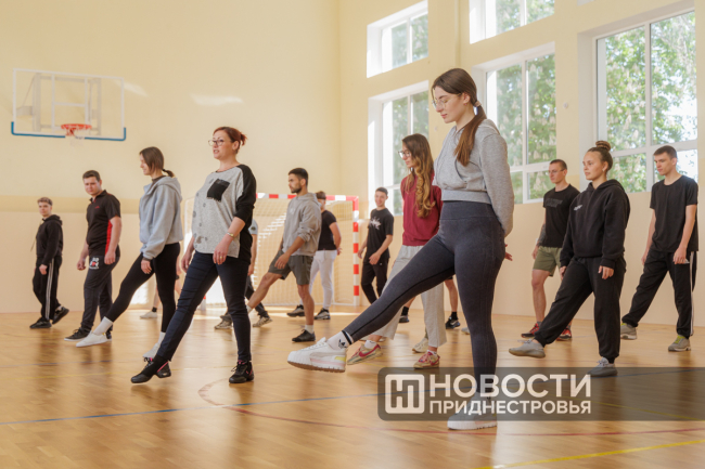 Тирасполь, 13 мая. /Новости Приднестровья/. В спортзале Приднестровского госуниверситета для студентов факультета физической культуры и спорта организовали мастер-класс по народным танцам молдавской, украинской и русской культуры. Его провели танцовщики института искусств им. Рубинштейна.