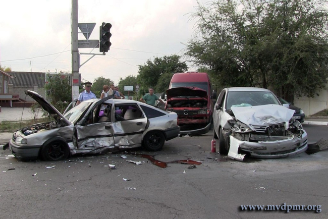 От удара «Opel» отбросило на маршрутное такси, стоявшее на противоположной стороне перекрёстка. В этот момент в салоне микроавтобуса находились 8 пассажиров. По словам водителя маршрутки, никто из них не пострадал. Однако 28-летний водитель «Opel» получил серьёзные травмы, его госпитализировали в Республиканскую клиническую больницу, сообщает пресс-служба МВД ПМР.
