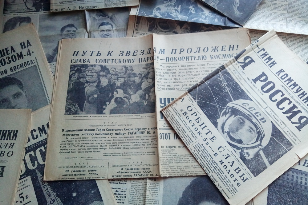 На выставке представлены советские газеты, рассказывающие о первых пилотируемых космических полётах, подвиге Юрия Гагарина. В апреле 1961 года газеты всего мира писали об этом удивительном событии XX века.