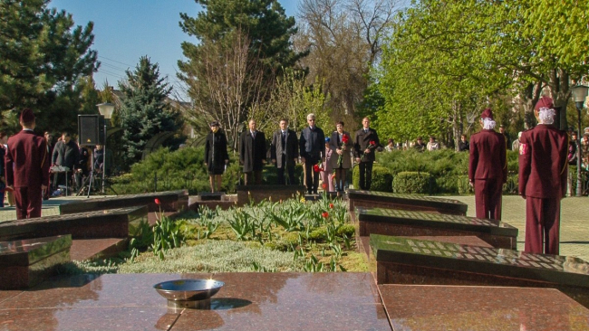 Сегодня на городском Мемориале Славы вспоминали всех героев-освободителей Дубоссарского района. На этом святом месте похоронен 81 солдат и офицер советской армии. Всего за освобождение города и района в 1944 году погибло более 4,5 тысяч советских воинов.