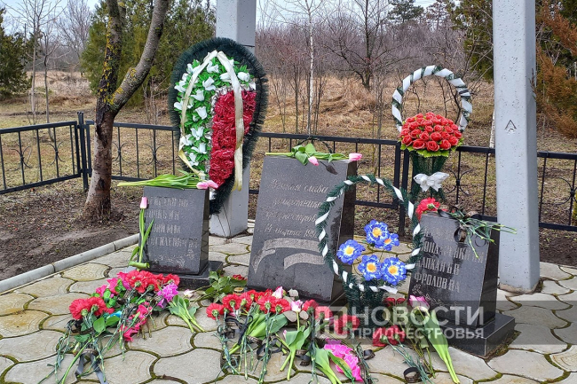Церемония возложения цветов сегодня состоялась у обелисков и гранитных плит на Роговской развилке