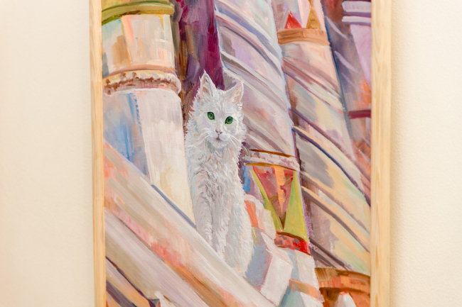 Особый интерес для Оксаны Пономаренко представляет картина под названием «Соня». Изображённая на ней кошка – это член их семьи.
