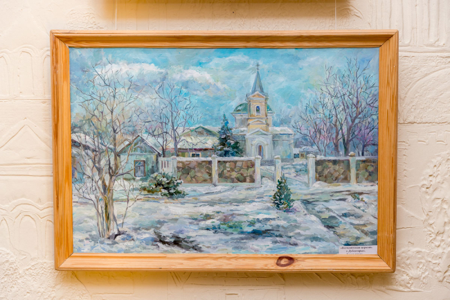 Сама художница родом из Рыбницы. Одна из работ в экспозиции посвящена этому городу – «Собор Архангела Михаила». Оксана Пономаренко рассказала, что в храме крестили её сына, поэтому ей захотелось, чтобы это место навсегда сохранилось в памяти.