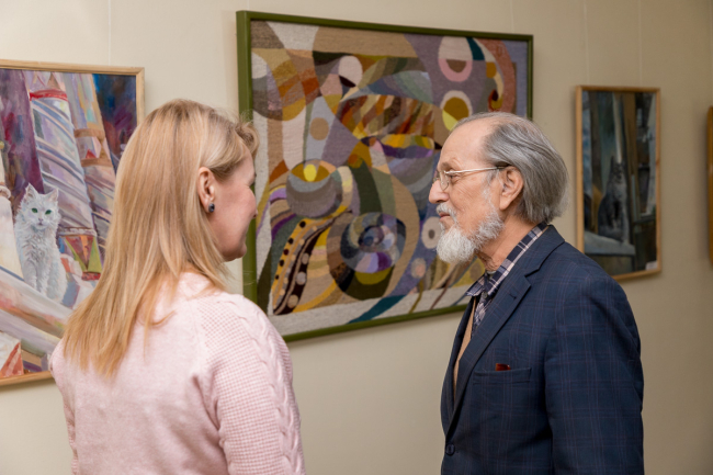 «Мне понравились его геометрические фигуры, которые он, на первый взгляд, на полотне располагает свободно. Но на самом деле это большой труд, потому что необходимо сделать эскиз, чётко выразить замысел», – рассказала Оксана Пономаренко.