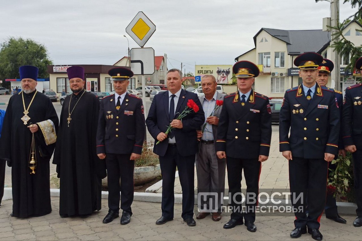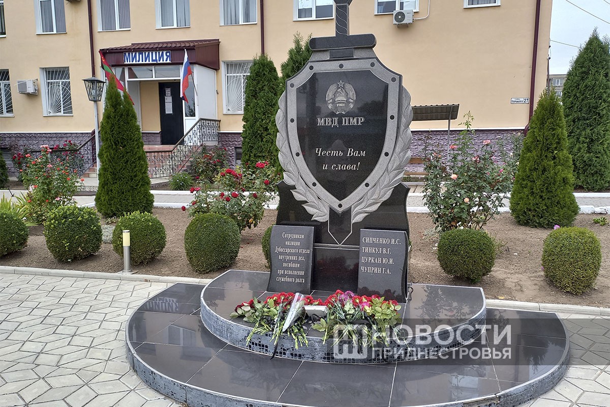 Присутствующие возложили цветы к памятному знаку у здания РОВД, установленному в честь погибших сотрудников, и к гранитной плите – на месте смертельного ранения первого начальника Дубоссарского РОВД Игоря Сипченко.