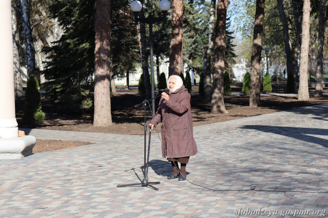 Руководитель слободзейского Клуба «Ветеран» Елена Свищёва в своем выступлении вспомнила тяжёлые годы Великой Отечественной войны и о том, что ей пришлось пережить голодовку, жизнь в детском доме, который стал для нее и родных братьев и сестёр спасением в те страшные времена. Елена Константиновна подчеркнула значимость празднования памятных дней.