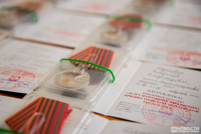 Среди наград, которые сегодня вручали ветеранам, медаль «Защитнику Приднестровья», юбилейная медаль «30 лет Народному ополчению ПМР», а также грамоты Президента. Медали и грамоты ветеранам ополчения вручал замглавы госадминистрации Тирасполя Геннадий Горох и первый Президент Приднестровья Игорь Смирнов.