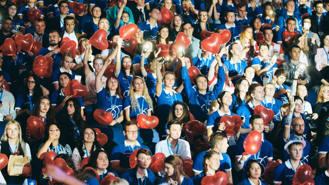 Уже вечером евразийцев ждало закрытие форума, по масштабам и энергии не уступающее старту проекта. Кто-то в строгих костюмах и нарядных платьях, кто-то в поло с символикой форума – 800 ребят съезжались к спорткомплексу «Олимпийский».