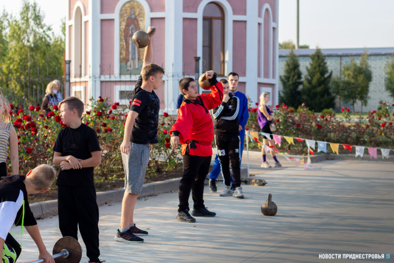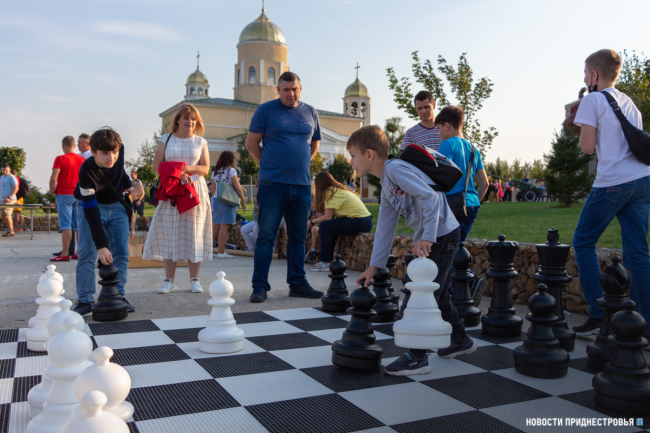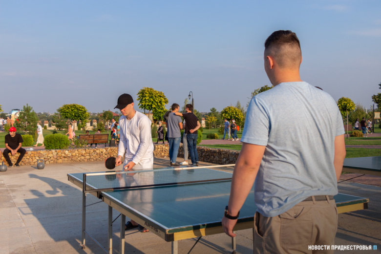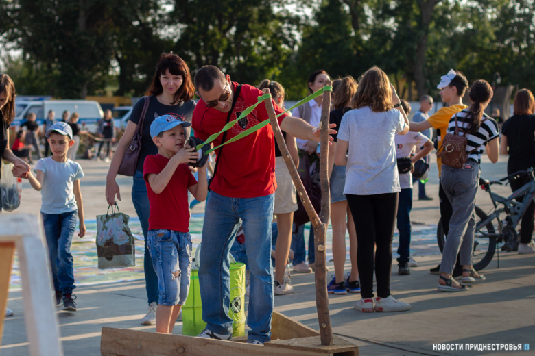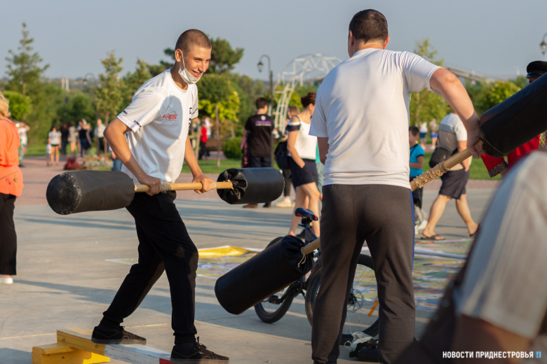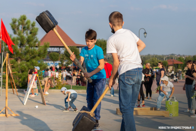 Пока одни наслаждались музыкальными выступлениями приднестровских артистов, другие могли принять участие в различных спортивных состязаниях. Причём такие развлечения были организованы не только для детей, но и взрослых. Пострелять из большой рогатки всей семьёй и выиграть приз. Устоять на тонком мостике, когда соперник пытается сбить тебя. Кто сильнее, пытались узнать не только подростки, но и их родители. Они поднимали гири и штанги. Рядом расположились площадка для настольного тенниса, а также большие шахматы, в которые играли совсем юные приднестровцы.