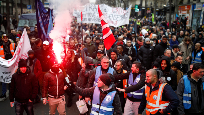 В забастовке, проходящей в стране с 5 декабря 2018 года, принимают участие врачи, учителя, адвокаты, пожарные и представители многих других профессий, выступающие против реформы пенсионной системы. Подавляющее большинство участников протеста составляют работники Национального общества железных дорог Франции (SNCF) и Парижского автономного управления транспорта (RATP).